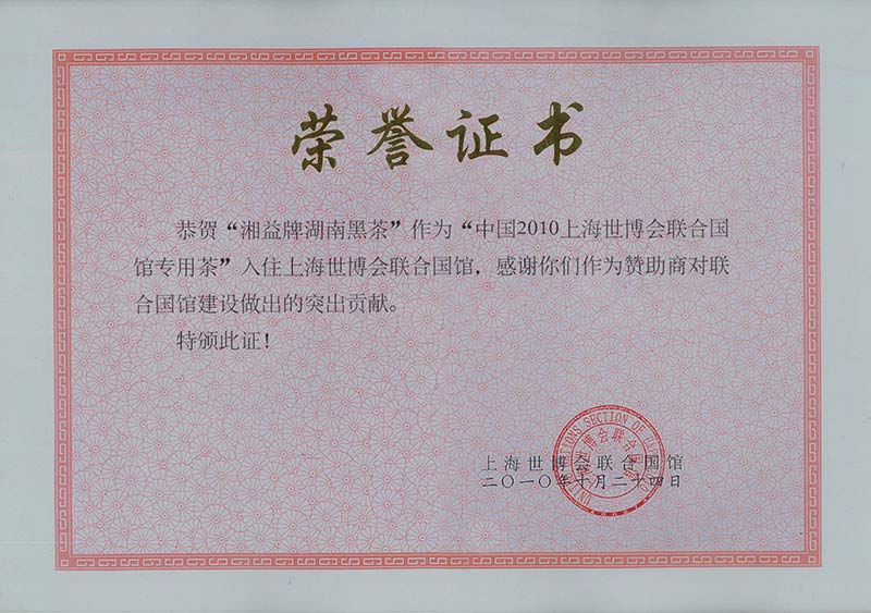 上海世博會(huì)榮譽(yù)證書