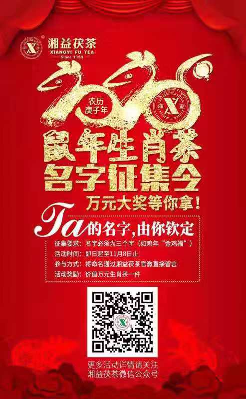 3、本次征集鼠年生肖茶名稱的最終解釋權,歸湘益茯茶所有。